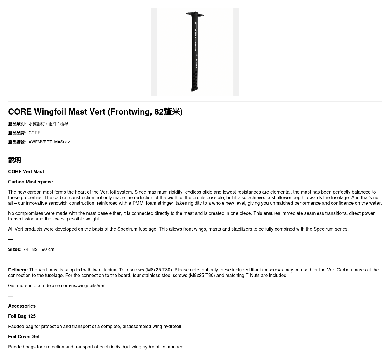 All Vert products were developed on the basis of the Spectrum fuselage. This allows front wings, masts and stabilizers to be fully combined with the Spectrum series.