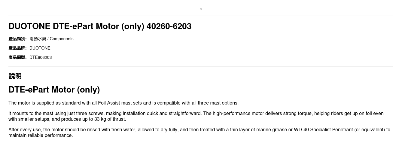 HOME / PRODUCTS / DUOTONE DTE-ePart Motor (only) 40260-6203