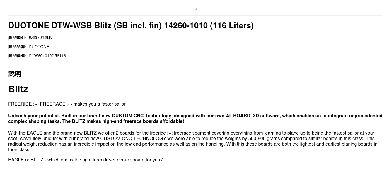 DUOTONE DTW-WSB Blitz (SB incl. fin) 14260-1010