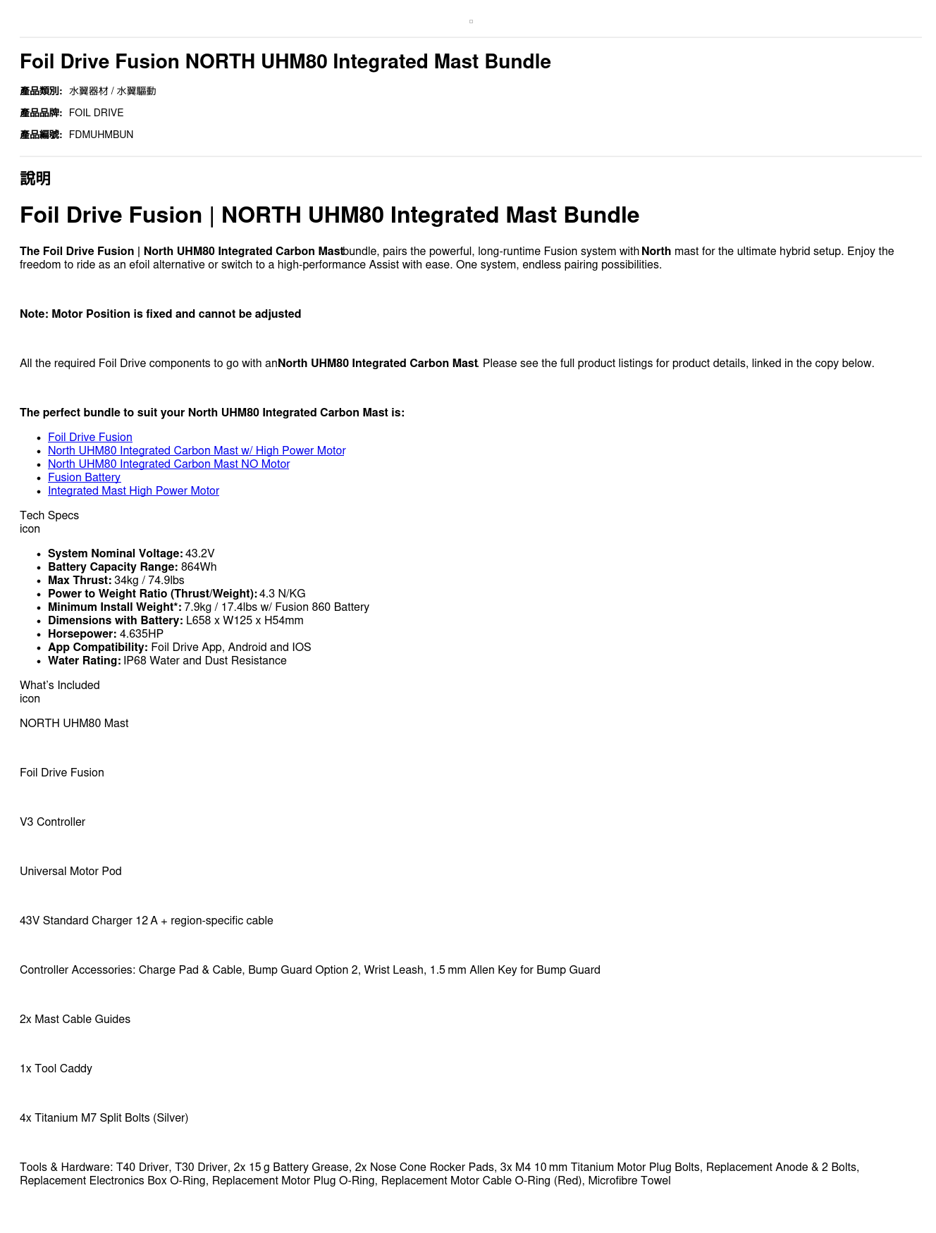 Foil Drive Fusion NORTH UHM80 Integrated Mast Bundle