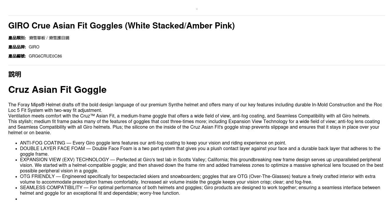 This stylish; medium fit frame packs many of the features of goggles that cost three-times more; including Expansion View Technology for a wide field of view; anti-fog lens coating and Seamless Compatibility with all Giro helmets. Plus; the silicone on the inside of the Cruz Asian Fit's goggle strap prevents slippage and ensures that it stays in place over your helmet or on beanie.