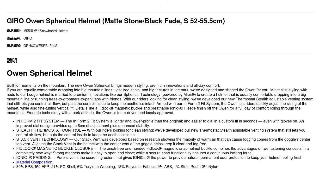 If you are equally comfortable dropping into big mountain lines, tight tree shots, and big features in the park, we've designed and shaped the Owen for you. Minimalist styling with nods to our Ledge helmet is married to premium innovations like our Spherical Technology (powered by Mips®) to create a helmet that is equally comfortable dropping into a big mountain line or running trees-to-groomers-to-park laps with friends. With our riders looking for clean styling, we've developed our new Thermostat Stealth adjustable venting system that still lets you control air flow, but puts the control inside to keep the aesthetics intact. Armed with our In Form 2 Fit System, the Owen lets riders quickly adjust the sizing of the helmet, while also fine-tuning vertical fit. Details like a Fidlock® magnetic buckle and breathable Ionic+® Fleece finish off the Owen for a full day of comfort rolling through the mountains. Freeride technology with a park attitude, the Owen is team-driven and locals-approved.