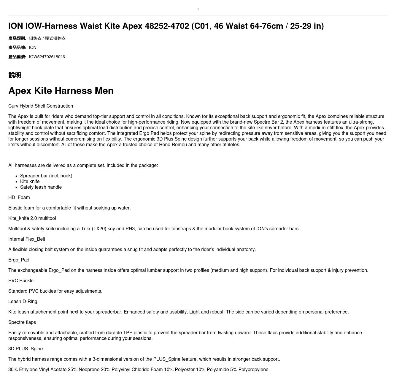 ION IOW-Harness Waist Kite Apex 48252-4702