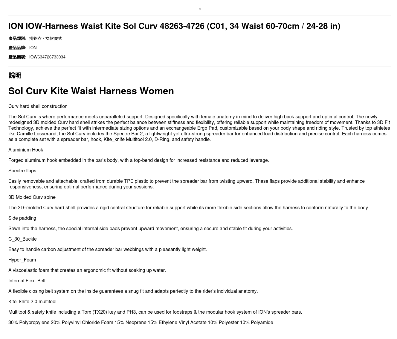 ION IOW-Harness Waist Kite Sol Curv 48263-4726