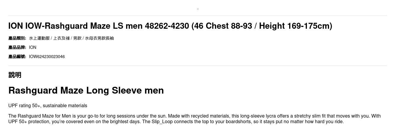 | 尺碼 | 46 Chest 88-93 / Height 169-175cm, 48 Chest 93-98 / Height 172-178cm, 50 Chest 98-103 / Height 175-181cm, 52 Chest 103-108 / Height 178-184cm, 54 Chest 108-113 / Height 181-187cm |