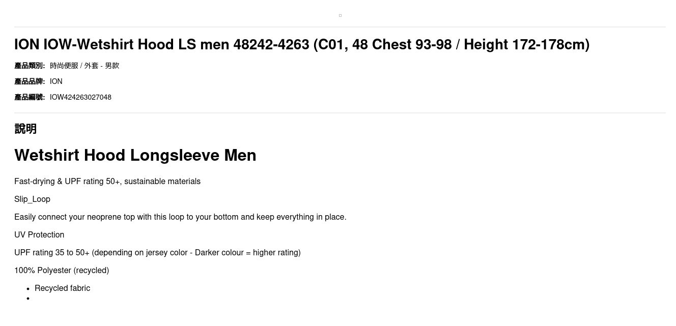 | 尺碼 | 48 Chest 93-98 / Height 172-178cm, 50 Chest 98-103 / Height 175-181cm, 52 Chest 103-108 / Height 178-184cm, 54 Chest 108-113 / Height 181-187cm |