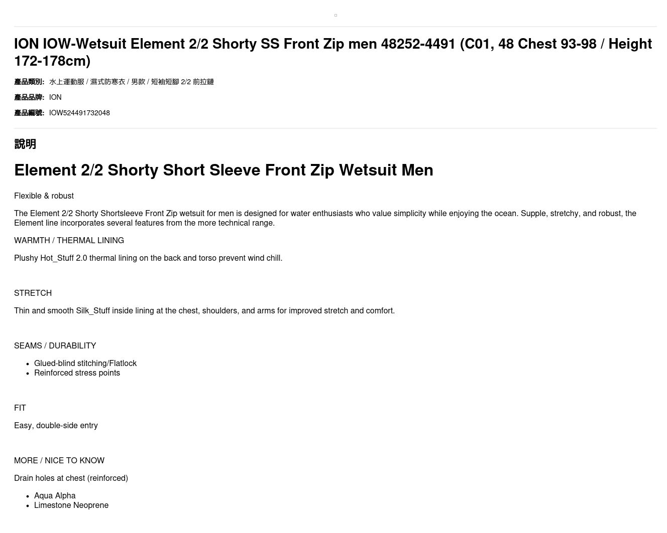 ION IOW-Wetsuit Element 2/2 Shorty SS Front Zip men 48252-4491