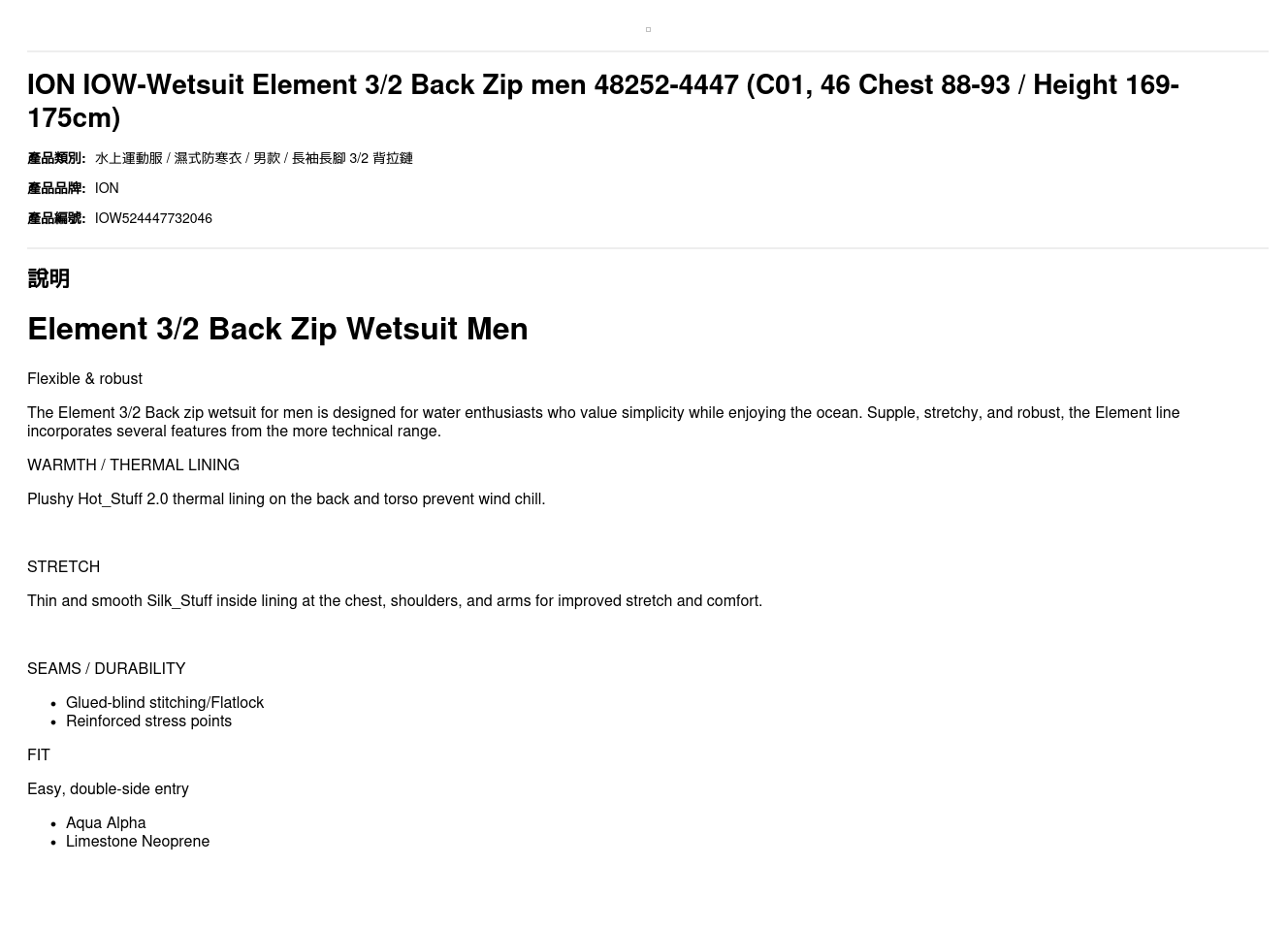 | 尺碼 | 46 Chest 88-93 / Height 169-175cm, 48 Chest 93-98 / Height 172-178cm, 50 Chest 98-103 / Height 175-181cm, 52 Chest 103-108 / Height 178-184cm, 54 Chest 108-113 / Height 181-187cm |