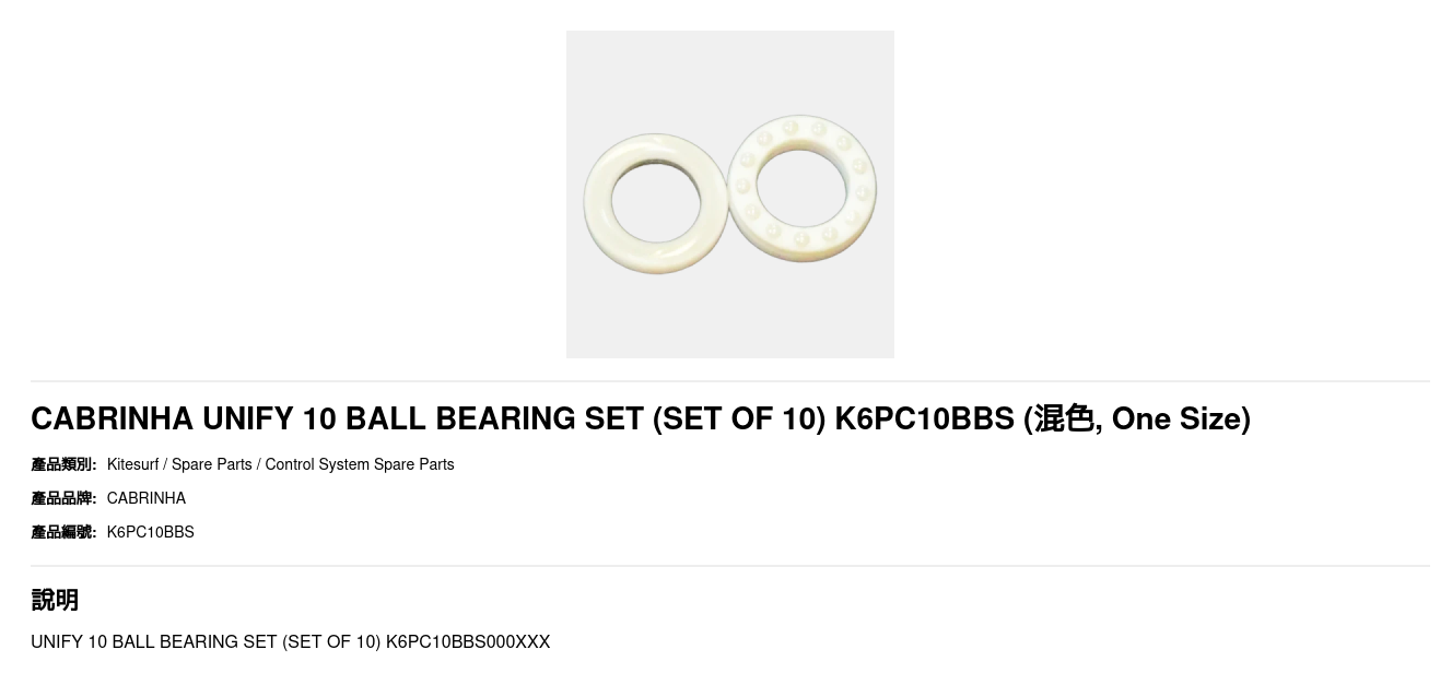 CABRINHA UNIFY 10 BALL BEARING SET (SET OF 10) K6PC10BBS