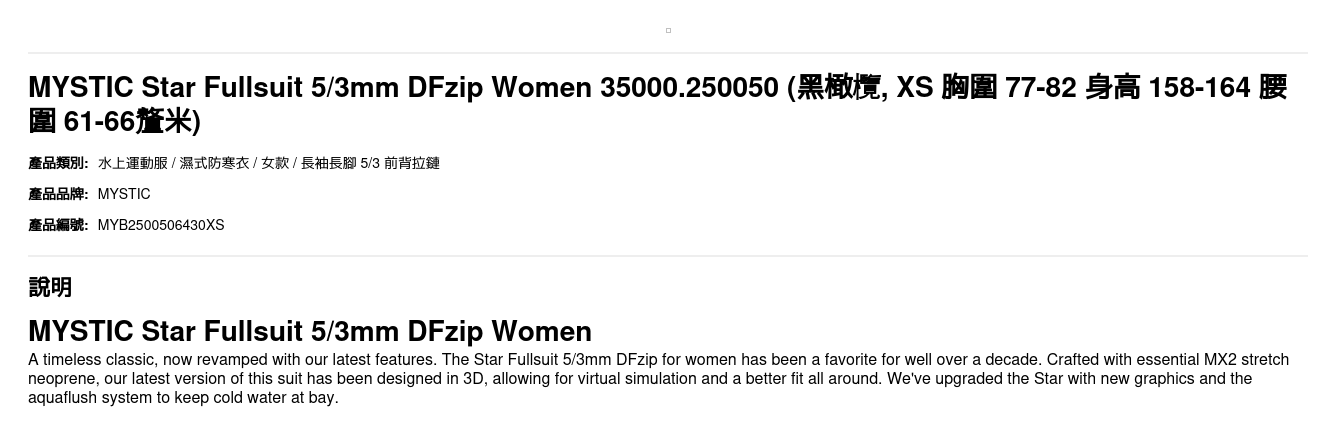 | 尺碼 | XS 胸圍 77-82 身高 158-164 腰圍 61-66釐米, S 胸圍 82-88 身高 163-169 腰圍 65-71釐米, M 胸圍 87-93 身高 164-172 腰圍 69-75釐米, L 胸圍 92-99 身高 170-175 腰圍 75-82釐米, XL 胸圍 100 身高 175-180 腰圍 82釐米 |