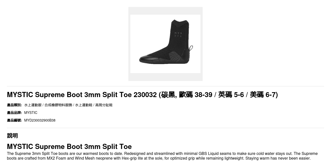 | 尺碼 | 歐碼 38-39 / 英碼 5-6 / 美碼 6-7, 歐碼 40 / 英碼 6.5 / 美碼 7.5, 歐碼 41-42 / 英碼 7.5-8 / 美碼 8-8.5, 歐碼 43 / 英碼 9 / 美碼 9.5 |