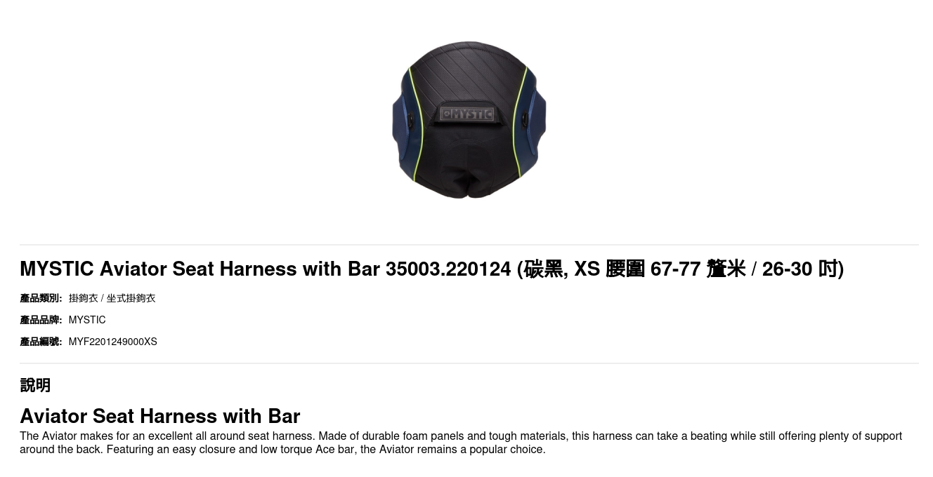 | 尺碼 | XS 腰圍 67-77 釐米 / 26-30 吋, S 腰圍 75-84 釐米 / 29-33 吋, M 腰圍 82-91 釐米 / 33-35 吋, L 腰圍 89-96 釐米 / 35-38 吋 |