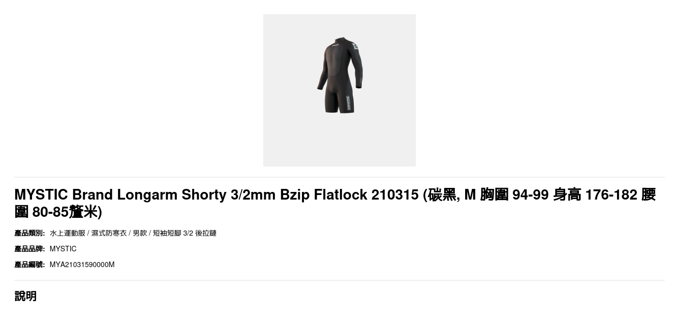 | 尺碼 | M 胸圍 94-99 身高 176-182 腰圍 80-85釐米, L 胸圍 99-104 身高 182-188 腰圍 85-90釐米 |