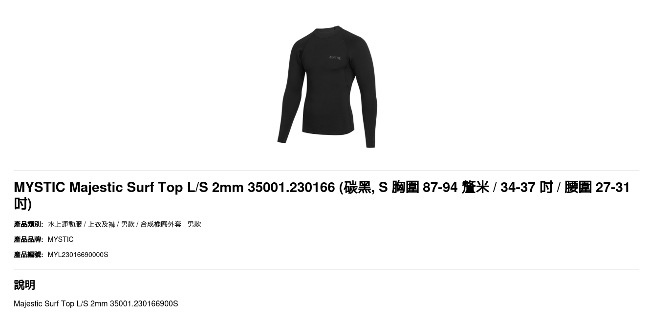 | 尺碼 | S 胸圍 87-94 釐米 / 34-37 吋 / 腰圍 27-31 吋, M 胸圍 92-99 釐米 / 36-39 吋 / 腰圍 29-33 吋, L 胸圍 99-104 釐米 / 39-41 吋 / 腰圍 32-35 吋 |