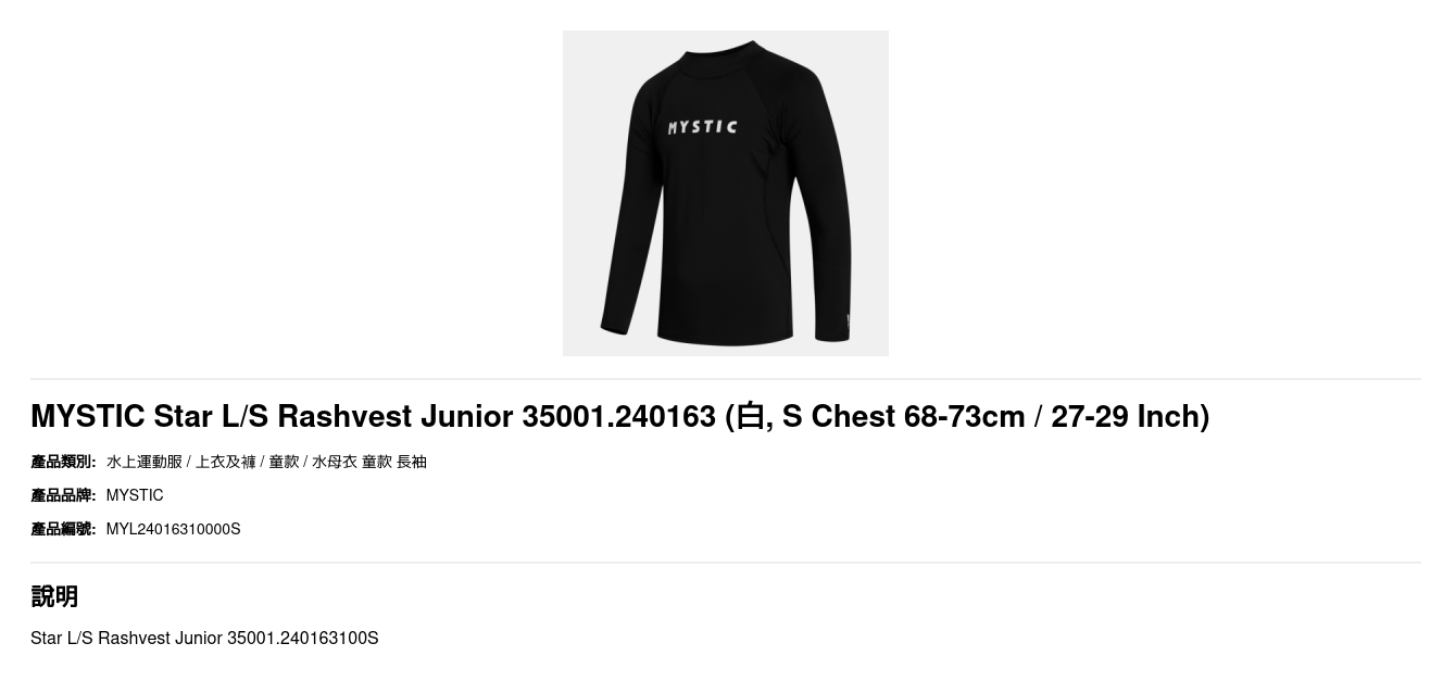 | 尺碼 | S Chest 68-73cm / 27-29 Inch, M Chest 71-76cm / 28-30 Inch, L 胸圍 76-82 釐米 / 30-32 吋 |