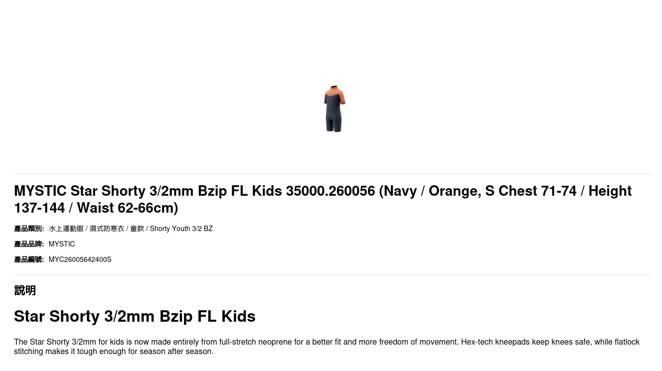 MYSTIC Star Shorty 3/2mm Bzip FL Kids 35000.260056