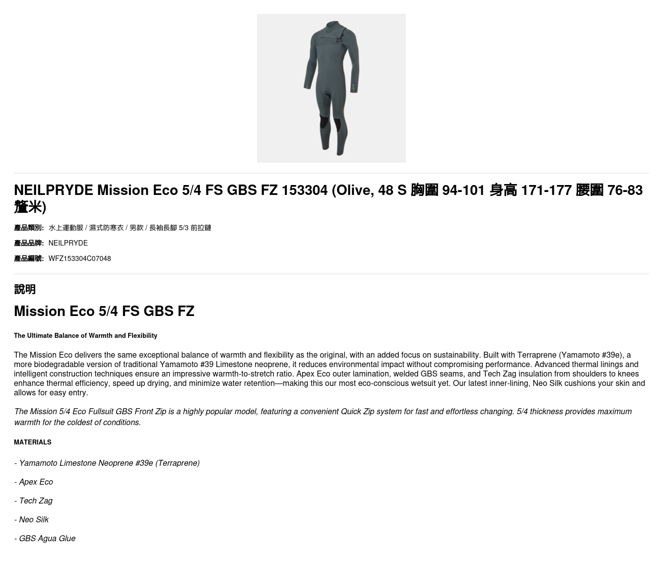 | 尺碼 | 48 S 胸圍 94-101 身高 171-177 腰圍 76-83釐米, 50 M 胸圍 99-106 身高 175-181 腰圍 81-88釐米, 52公升 胸圍 103-110 身高 179-186 腰圍 86-93釐米, 54 XL 胸圍 108-115 身高 183-189 腰圍 91-98釐米 |