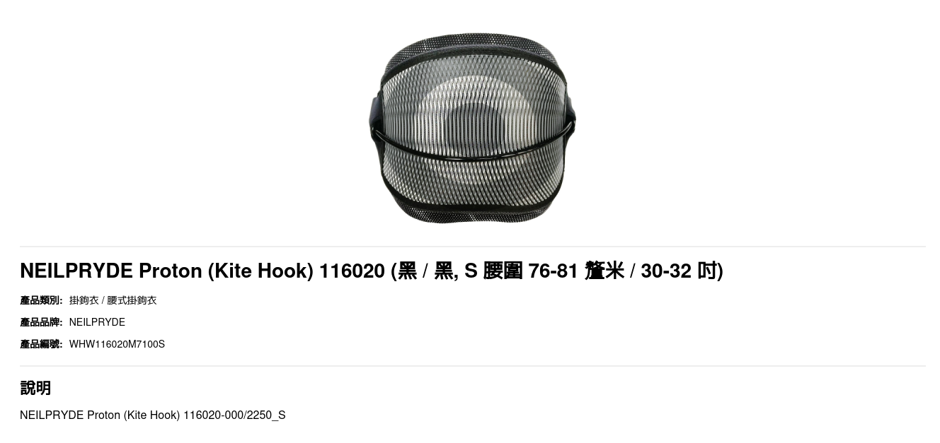 尺碼 S 腰圍 76-81 釐米 / 30-32 吋, M 腰圍 81-86 釐米 / 32-34 吋, L 腰圍 86-91 釐米 / 34-36 吋, XL 腰圍 91-97 釐米 / 36-38 吋