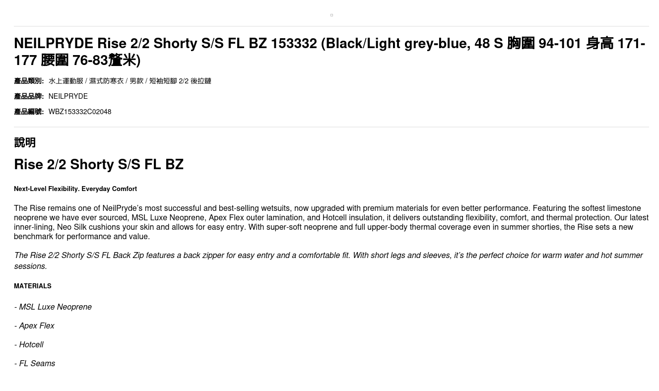 HOME / PRODUCTS / NEILPRYDE Rise 2/2 Shorty S/S FL BZ 153332