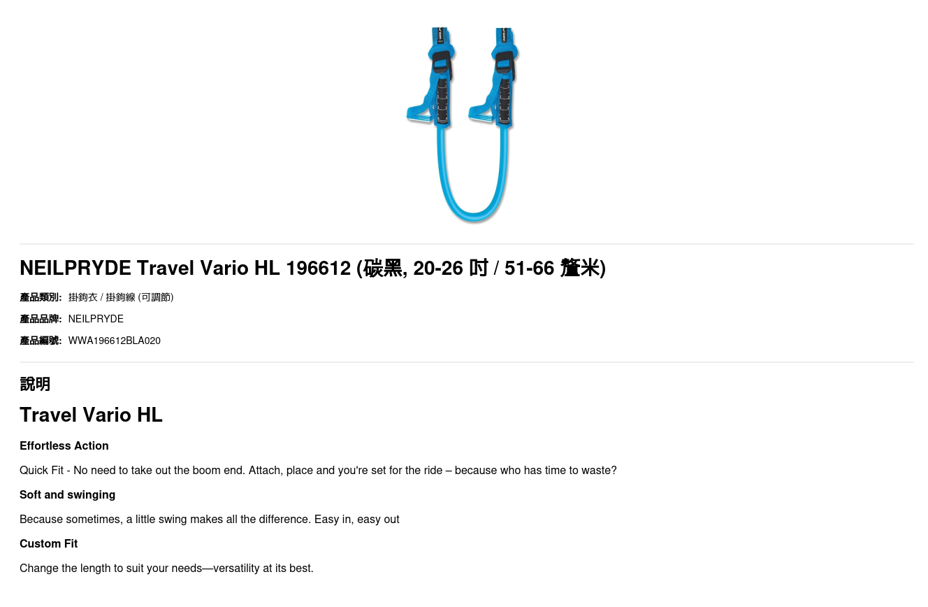 | 尺碼 | 20-26 吋 / 51-66 釐米, 24-30 吋 / 61-76釐米 |