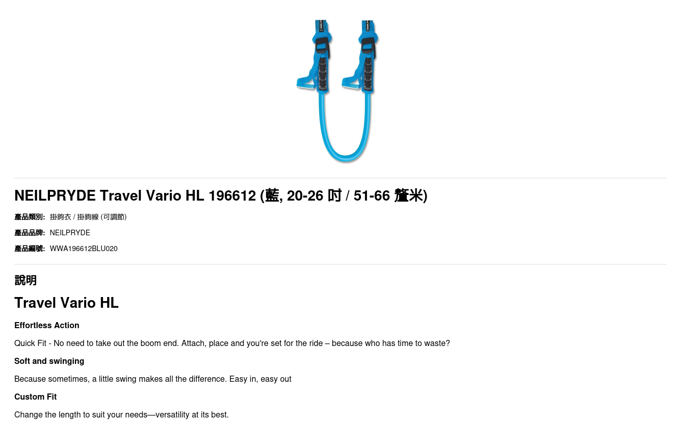 | 尺碼 | 20-26 吋 / 51-66 釐米, 24-30 吋 / 61-76釐米 |