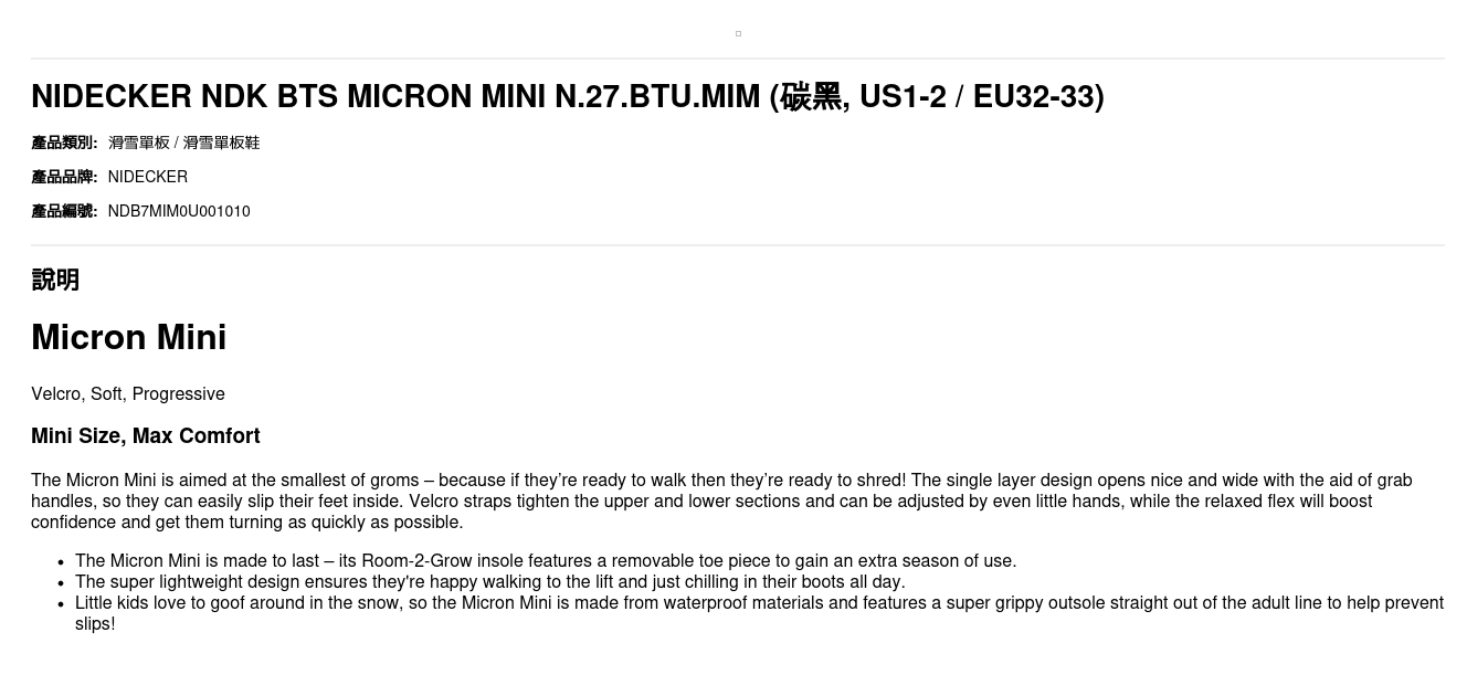 | 尺碼 | US1-2 / EU32-33, US2-3 / EU33-34.5, US3-4 / EU34.5-35.5, US10C-11C / EU28.5-29.5, US11C-12C / EU29.5-30.5, US12C-13C / EU30.5-31.5, US13C / EU31.5 |