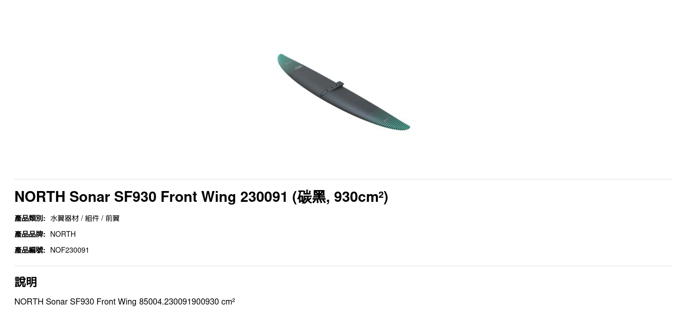 NORTH Sonar SF930 Front Wing 85004.230091900930 cm²