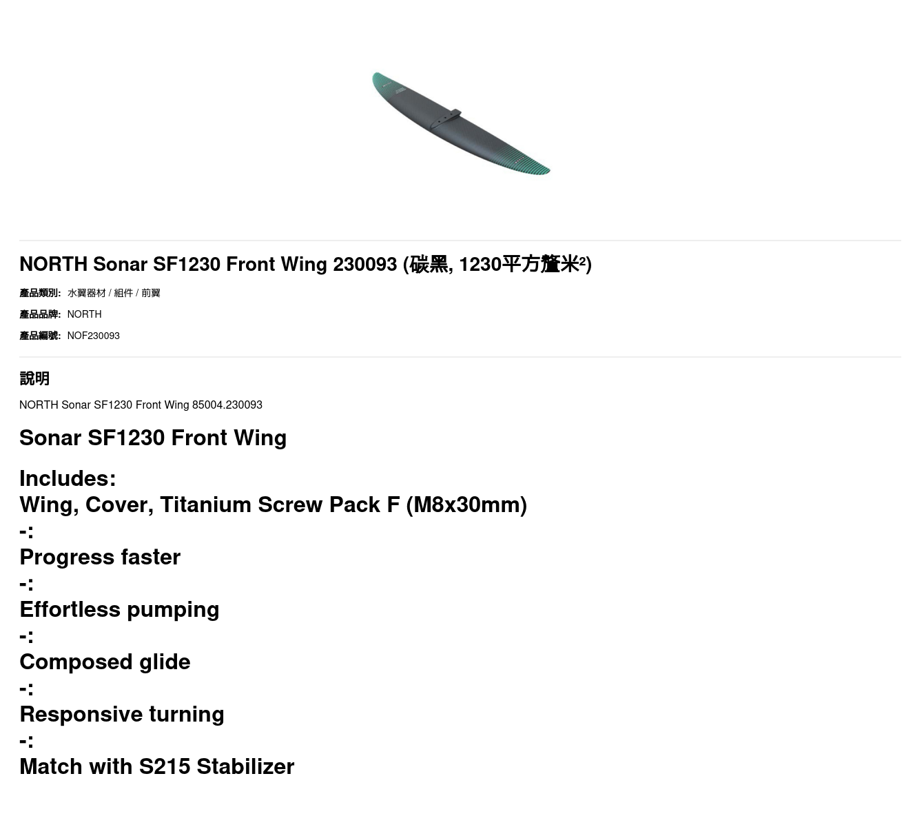 NORTH Sonar SF1230 Front Wing 85004.230093