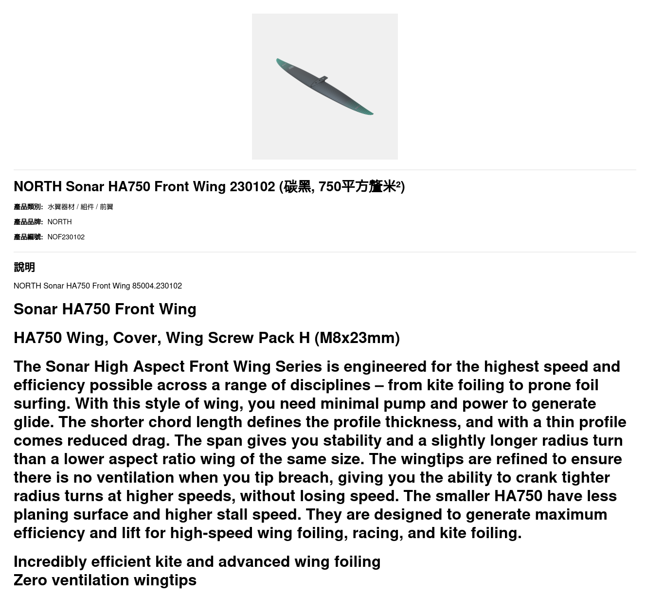 NORTH Sonar HA750 Front Wing 230102