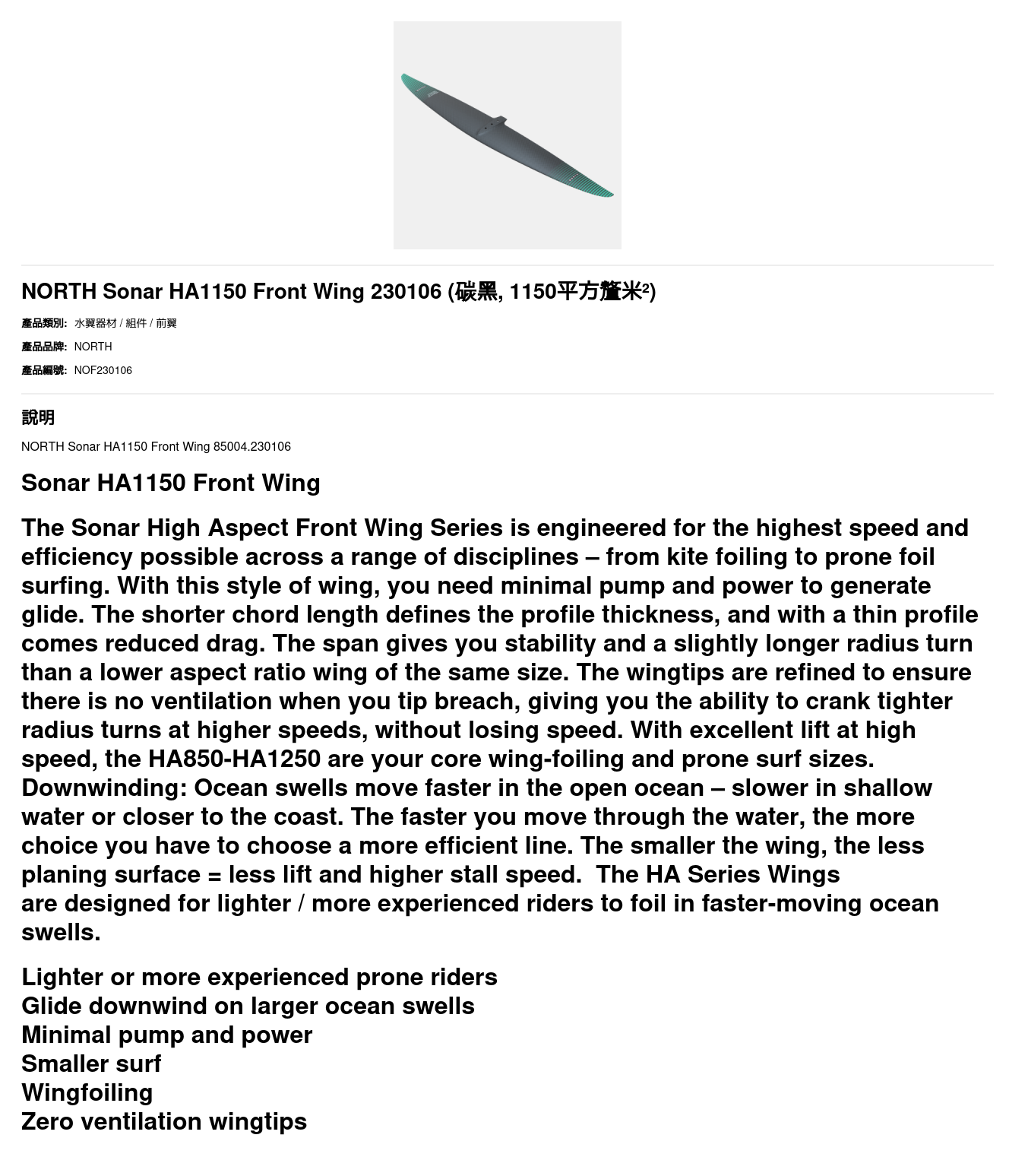 NORTH Sonar HA1150 Front Wing 85004.230106