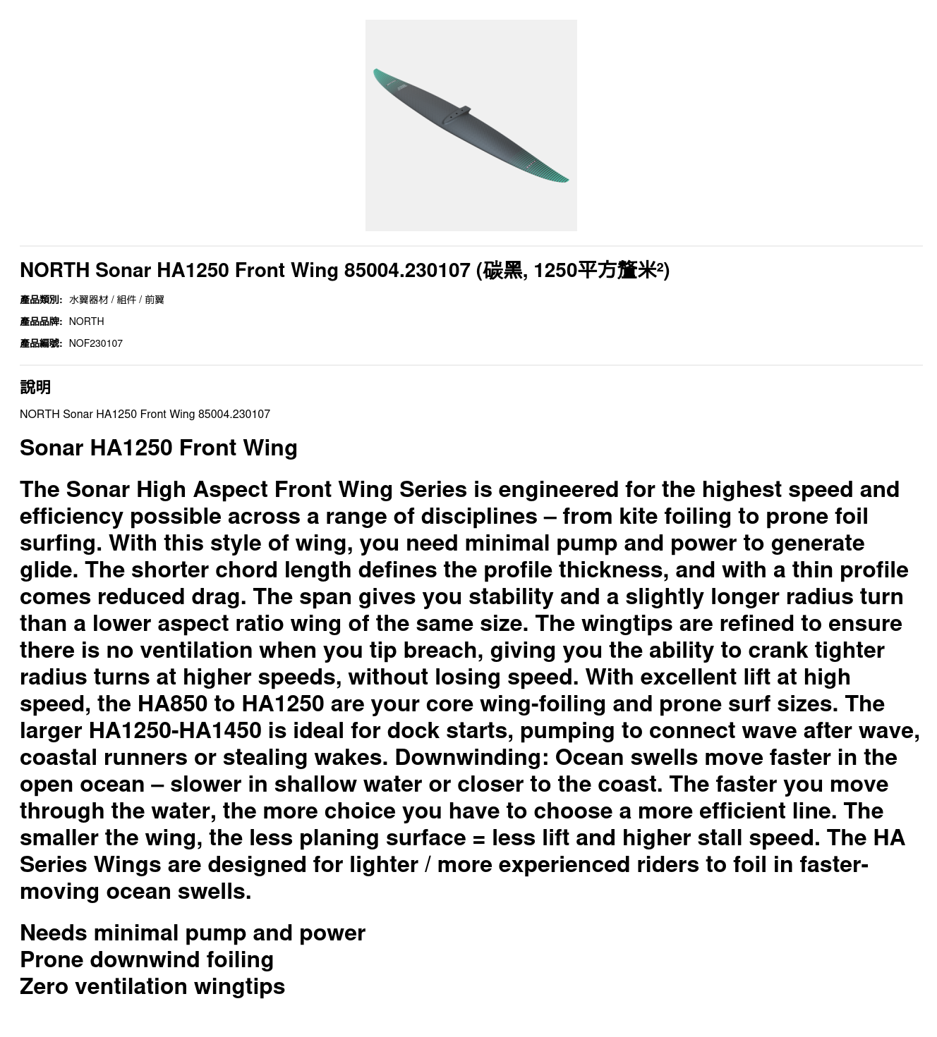 HOME / PRODUCTS / NORTH Sonar HA1250 Front Wing 85004.230107