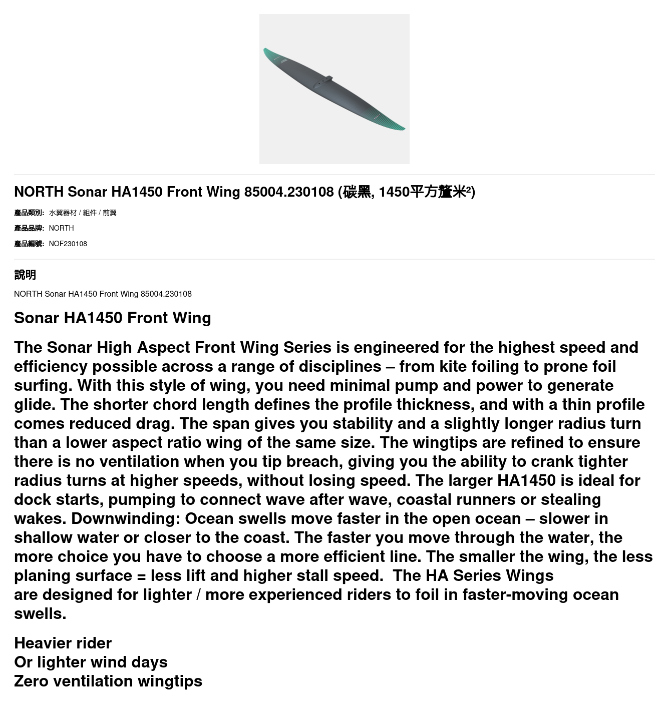 NORTH Sonar HA1450 Front Wing 85004.230108