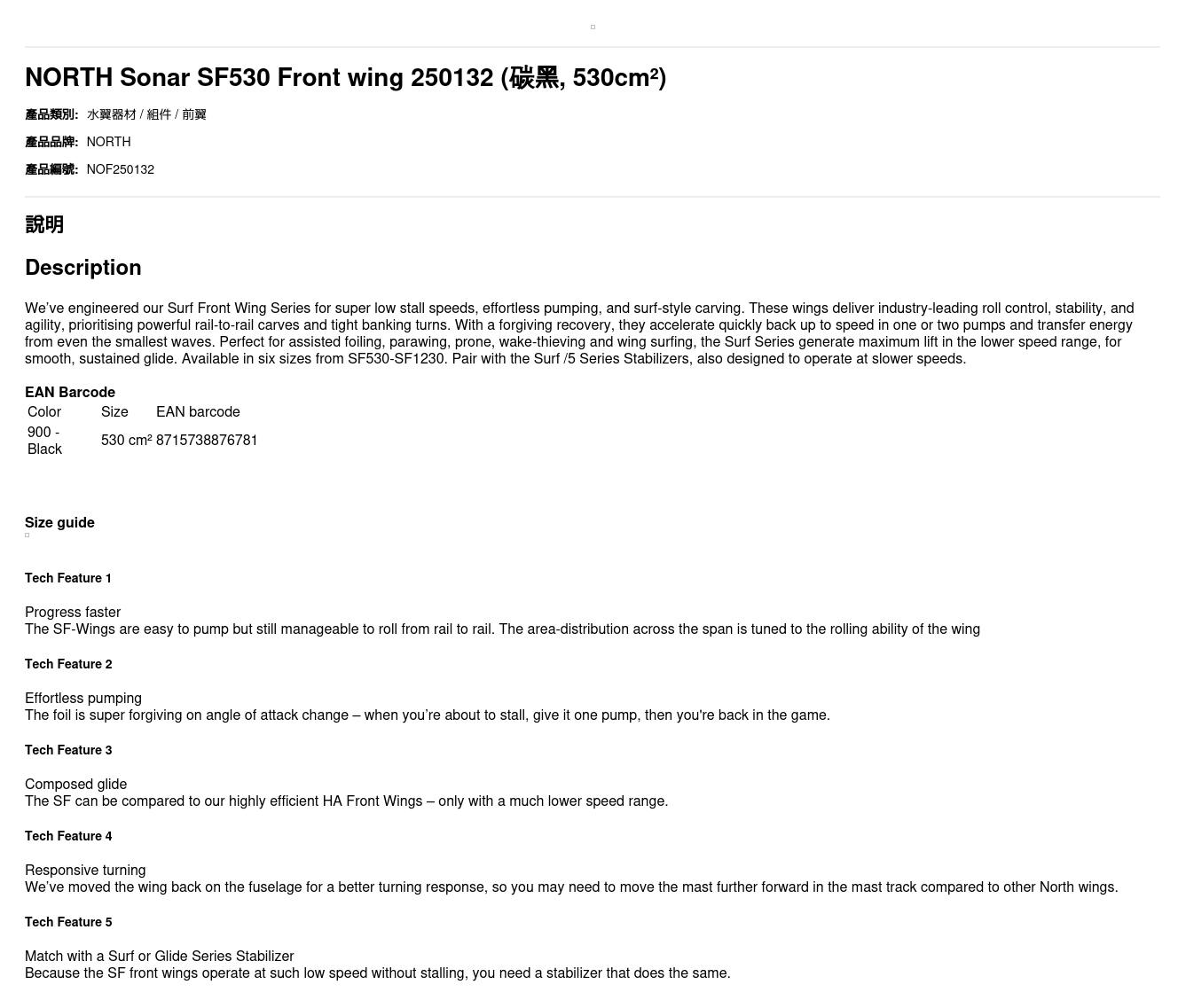 NORTH Sonar SF530 Front wing 250132