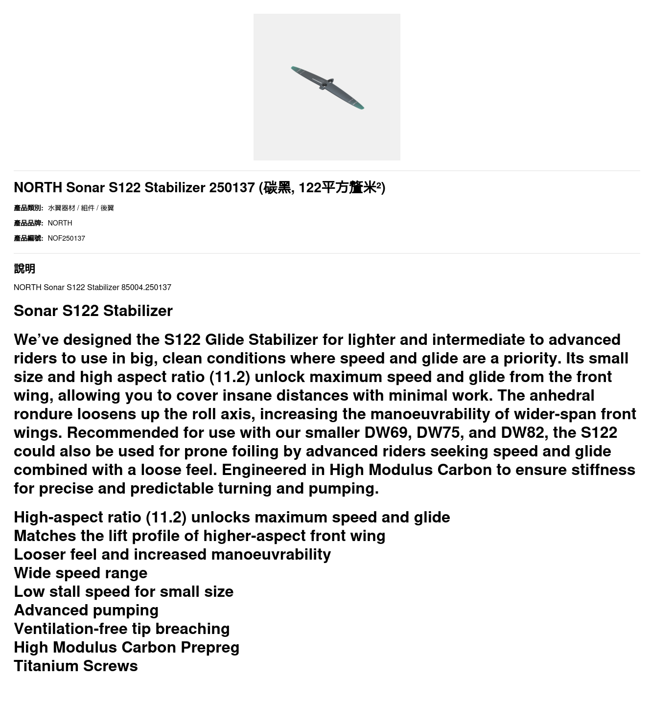 We’ve designed the S122 Glide Stabilizer for lighter and intermediate to advanced riders to use in big, clean conditions where speed and glide are a priority. Its small size and high aspect ratio (11.2) unlock maximum speed and glide from the front wing, allowing you to cover insane distances with minimal work. The anhedral rondure loosens up the roll axis, increasing the manoeuvrability of wider-span front wings. Recommended for use with our smaller DW69, DW75, and DW82, the S122 could also be used for prone foiling by advanced riders seeking speed and glide combined with a loose feel. Engineered in High Modulus Carbon to ensure stiffness for precise and predictable turning and pumping.