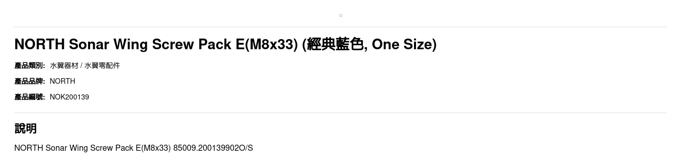 NORTH Sonar Wing Screw Pack E(M8x33) 85009.200139902O/S