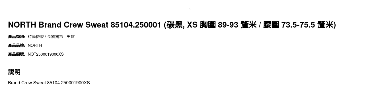 | 尺碼 | XS 胸圍 89-93 釐米 / 腰圍 73.5-75.5 釐米, S 胸圍 94-98 釐米 / 腰圍 76-78 釐米, M 胸圍 99-103 釐米 / 腰圍 78.5-83 釐米, L 胸圍 104-108 釐米 / 腰圍 83.5-88 釐米, XL 胸圍 109-114 釐米 / 腰圍 91-93.5 釐米, XS 胸圍 115-120 釐米 / 腰圍 96.5-98.5 釐米 |