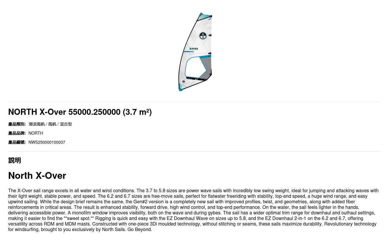 The X-Over sail range excels in all water and wind conditions. The 3.7 to 5.8 sizes are power wave sails with incredibly low swing weight, ideal for jumping and attacking waves with their light weight, stable power, and speed. The 6.2 and 6.7 sizes are free-move sails, perfect for flatwater freeriding with stability, top-end speed, a huge wind range, and easy upwind sailing. While the design brief remains the same, the Gen#2 version is a completely new sail with improved profiles, twist, and geometries, along with added fiber reinforcements in critical areas. The result is enhanced stability, forward drive, high wind control, and top-end performance. On the water, the sail feels lighter in the hands, delivering accessible power. A monofilm window improves visibility, both on the wave and during gybes. The sail has a wider optimal trim range for downhaul and outhaul settings, making it easier to find the ""sweet spot."" Rigging is quick and easy with the EZ Downhaul Wave on sizes up to 5.8, and the EZ Downhaul 2-in-1 on the 6.2 and 6.7, offering versatility across RDM and MDM masts. Constructed with one-piece 3Di moulded technology, without stitching or seams, these sails maximize durability. Revolutionary technology for windsurfing, brought to you exclusively by North Sails. Go Beyond.