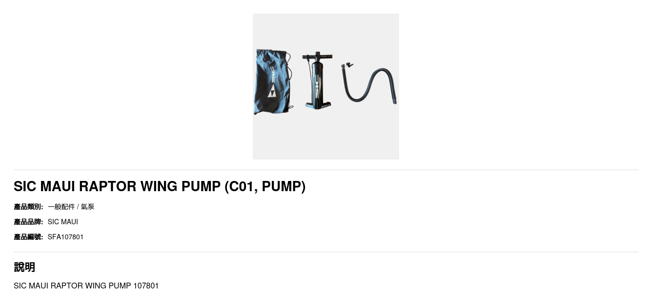 SIC MAUI RAPTOR WING PUMP 107801