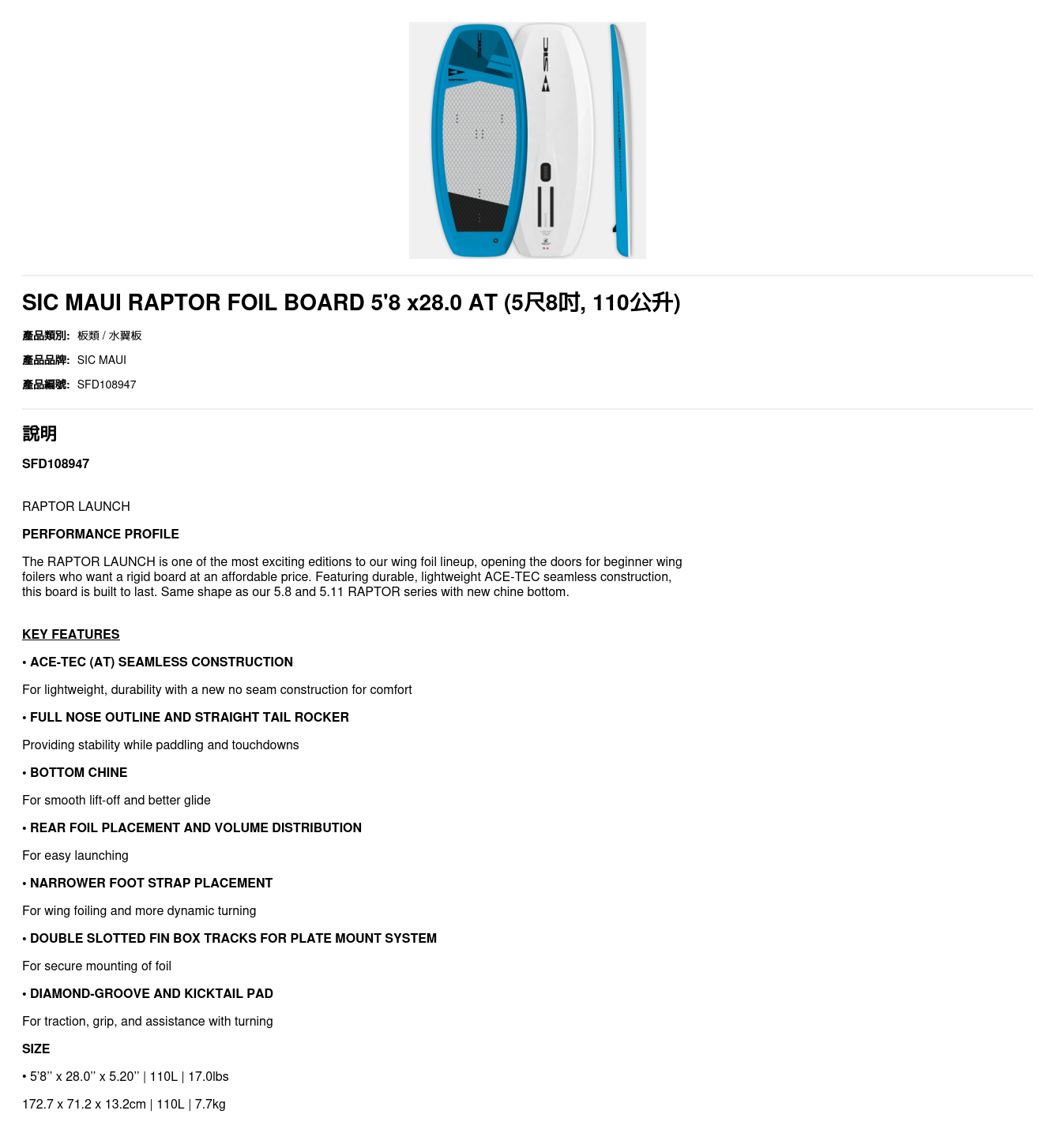 SIC MAUI RAPTOR FOIL BOARD 5'8 x28.0 AT 108947