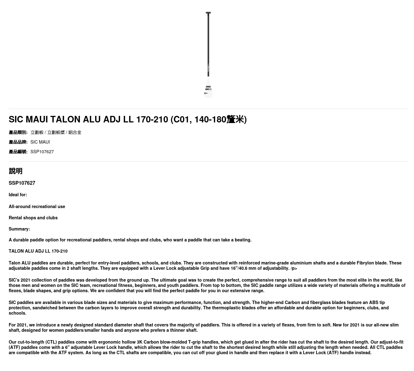 Talon ALU paddles are durable, perfect for entry-level paddlers, schools, and clubs. They are constructed with reinforced marine-grade aluminium shafts and a durable Fibrylon blade. These adjustable paddles come in 2 shaft lengths. They are equipped with a Lever Lock adjustable Grip and have 16"/40.6 mm of adjustability. /p>