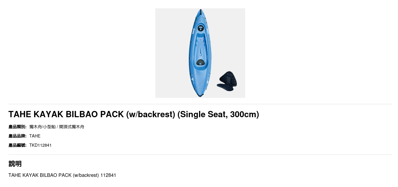 TAHE KAYAK BILBAO PACK (w/backrest) 112841