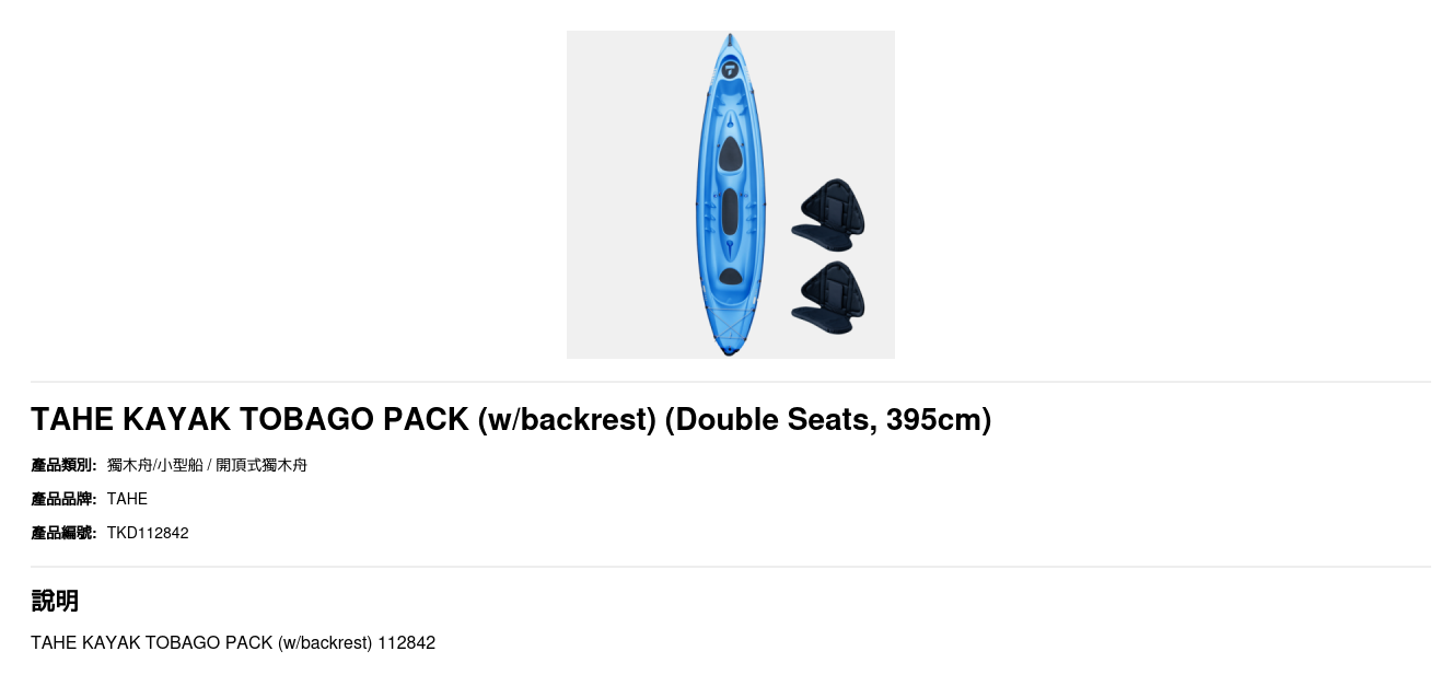 TAHE KAYAK TOBAGO PACK (w/backrest) 112842