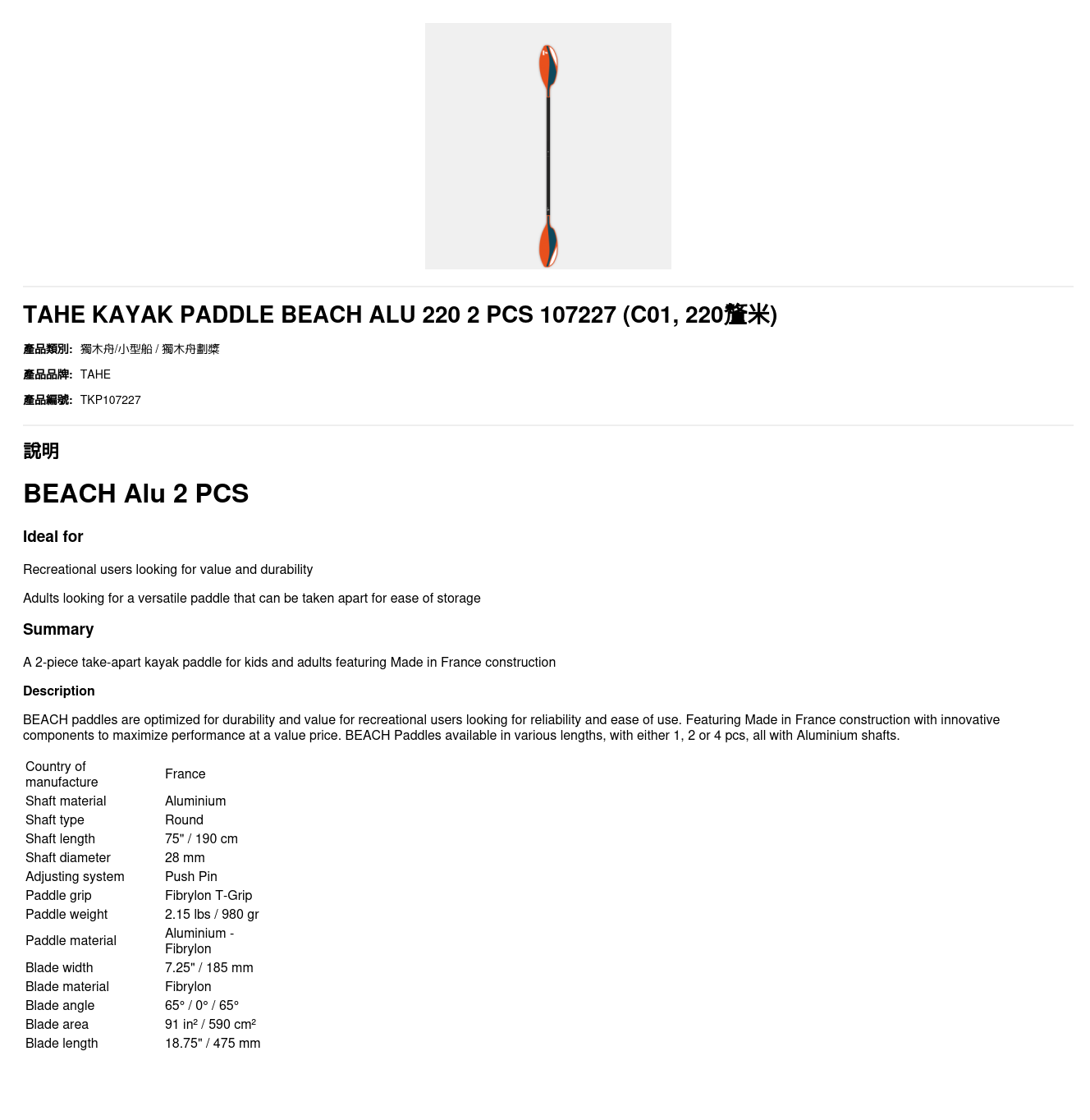 TAHE KAYAK PADDLE BEACH ALU 220 2 PCS 107227