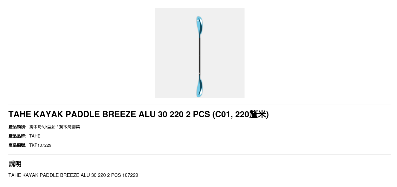TAHE KAYAK PADDLE BREEZE ALU 220 2 PCS 107229