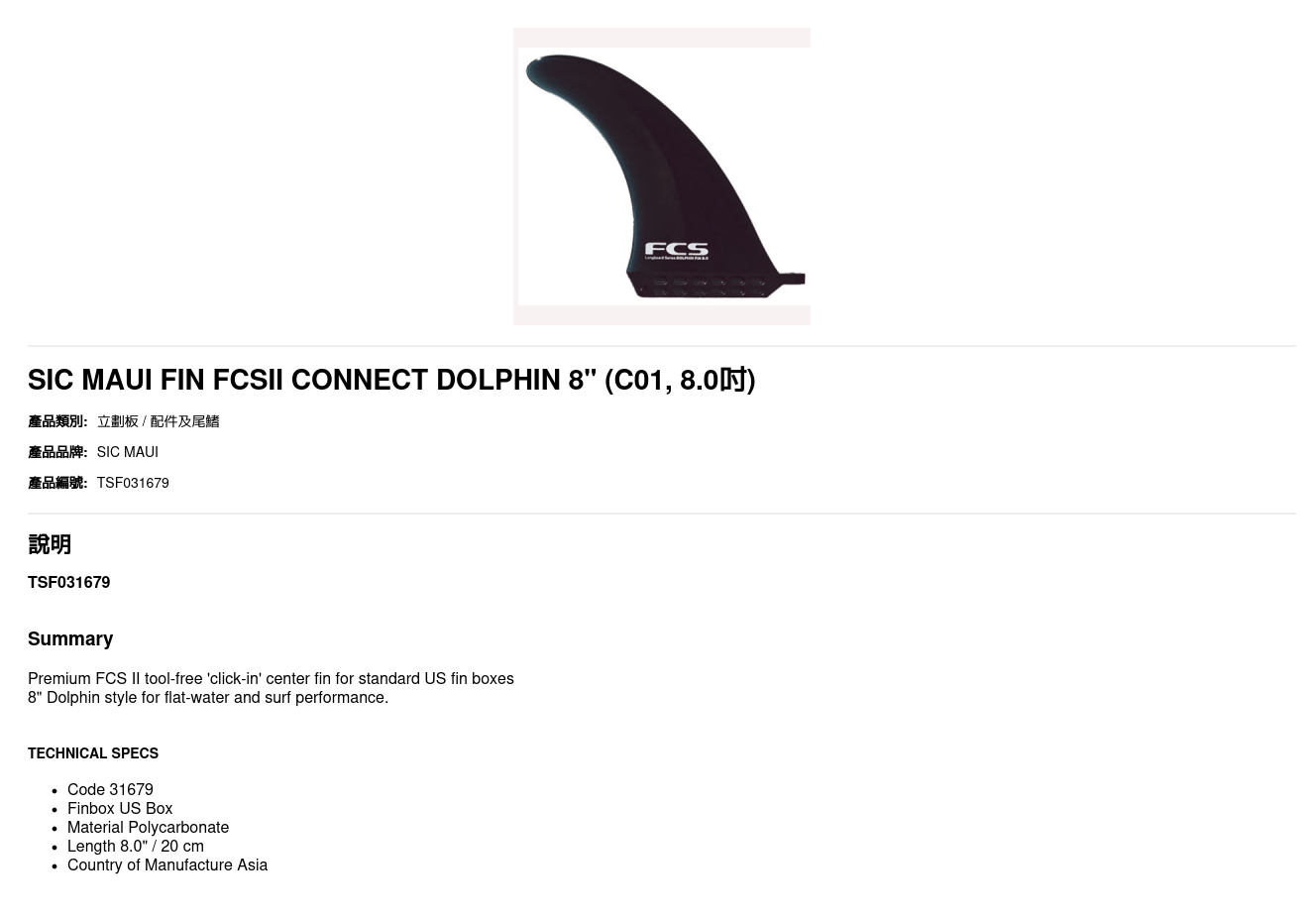 SIC MAUI FIN FCSII CONNECT DOLPHIN 8'' 31679