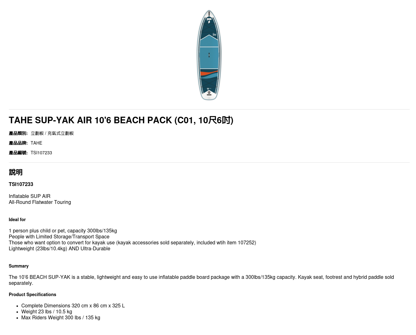 TAHE SUP-YAK AIR 10'6 BEACH PACK 107233