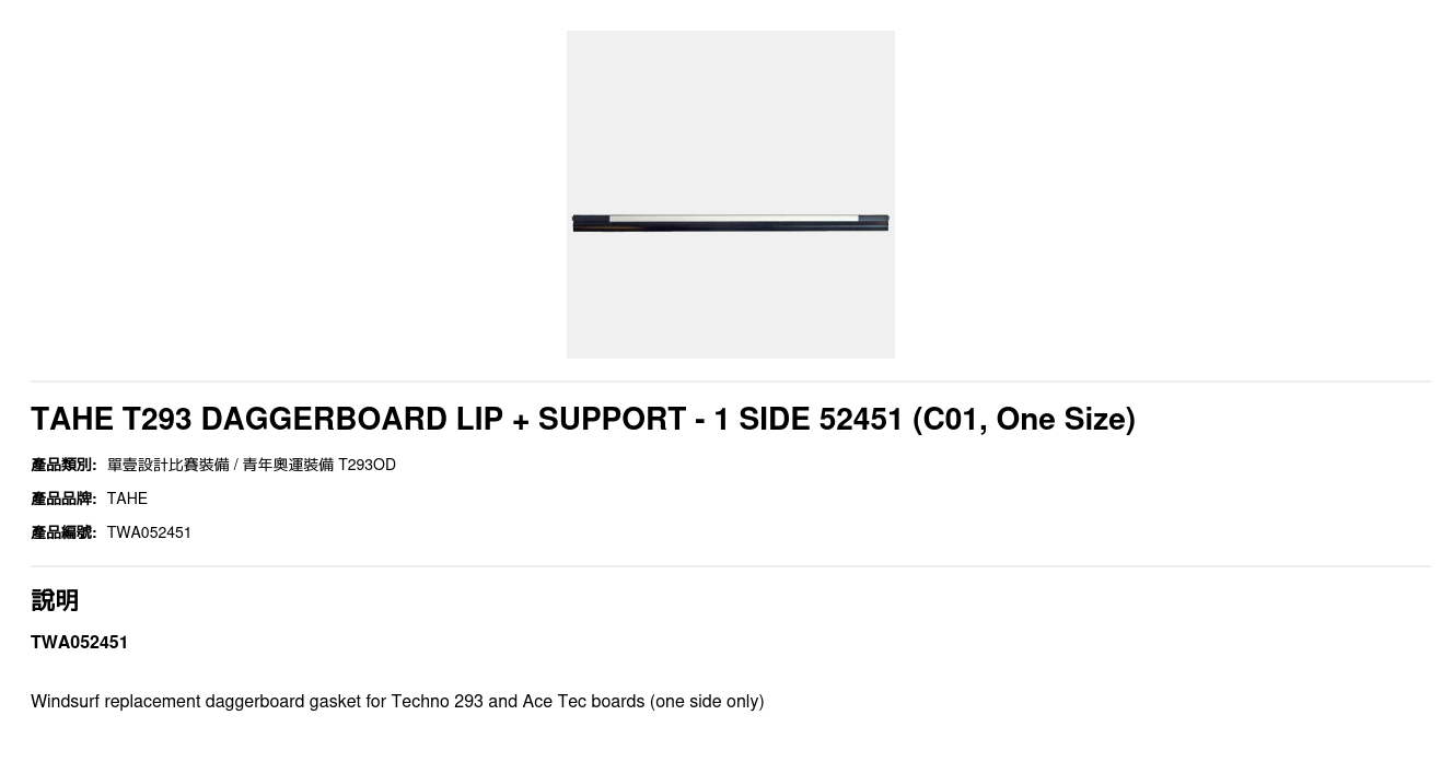 TAHE T293 DAGGERBOARD LIP + SUPPORT - 1 SIDE 52451