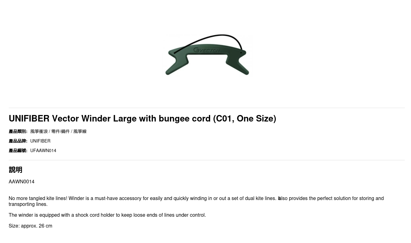 No more tangled kite lines! Winder is a must-have accessory for easily and quickly winding in or out a set of dual kite lines. It also provides the perfect solution for storing and transporting lines.