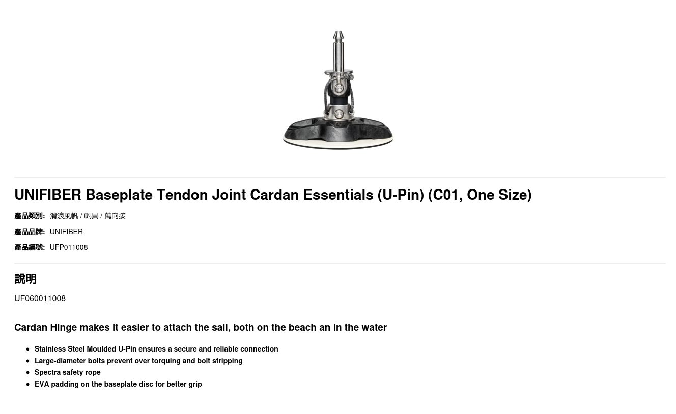 Cardan Hinge makes it easier to attach the sail, both on the beach an in the water