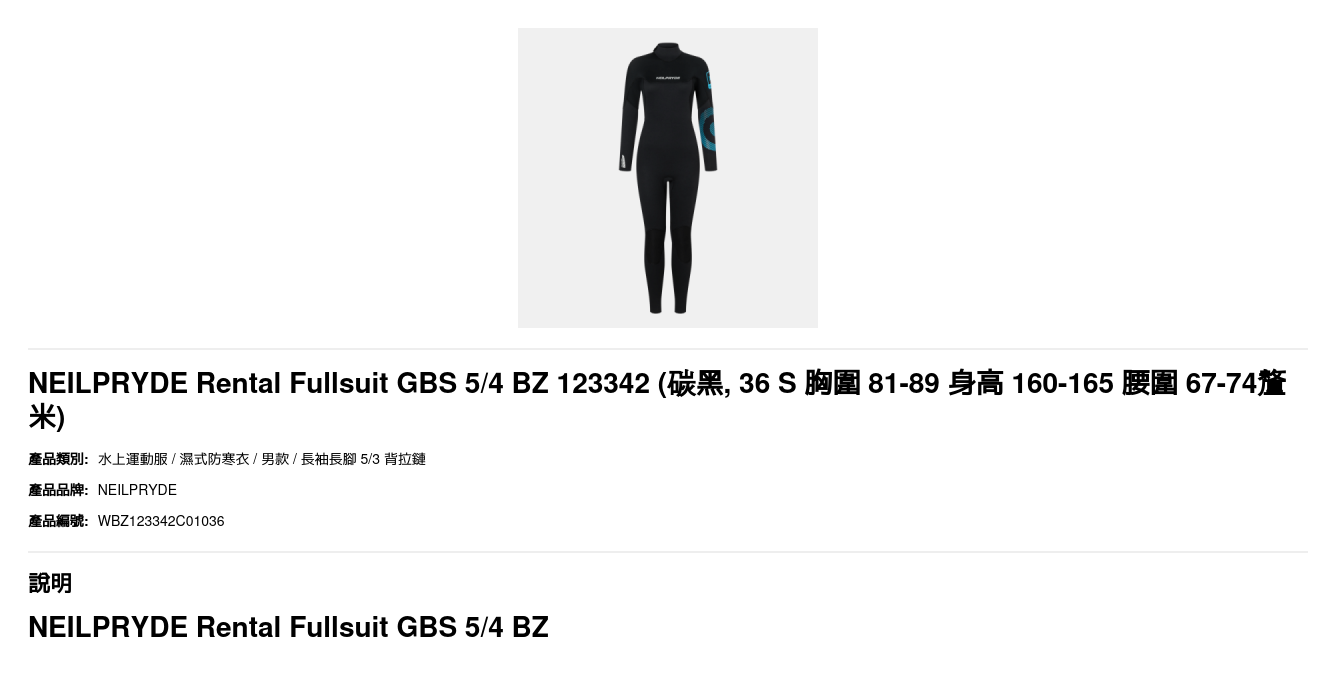 | 尺碼 | 34 XS 胸圍 76-84 身高 158-163 腰圍 62-69釐米, 36 S 胸圍 81-89 身高 160-165 腰圍 67-74釐米, 38 M 胸圍 86-94 身高 165-170 腰圍 72-79釐米, 40公升 胸圍 91-99 身高 170-175 腰圍 77-84釐米 |